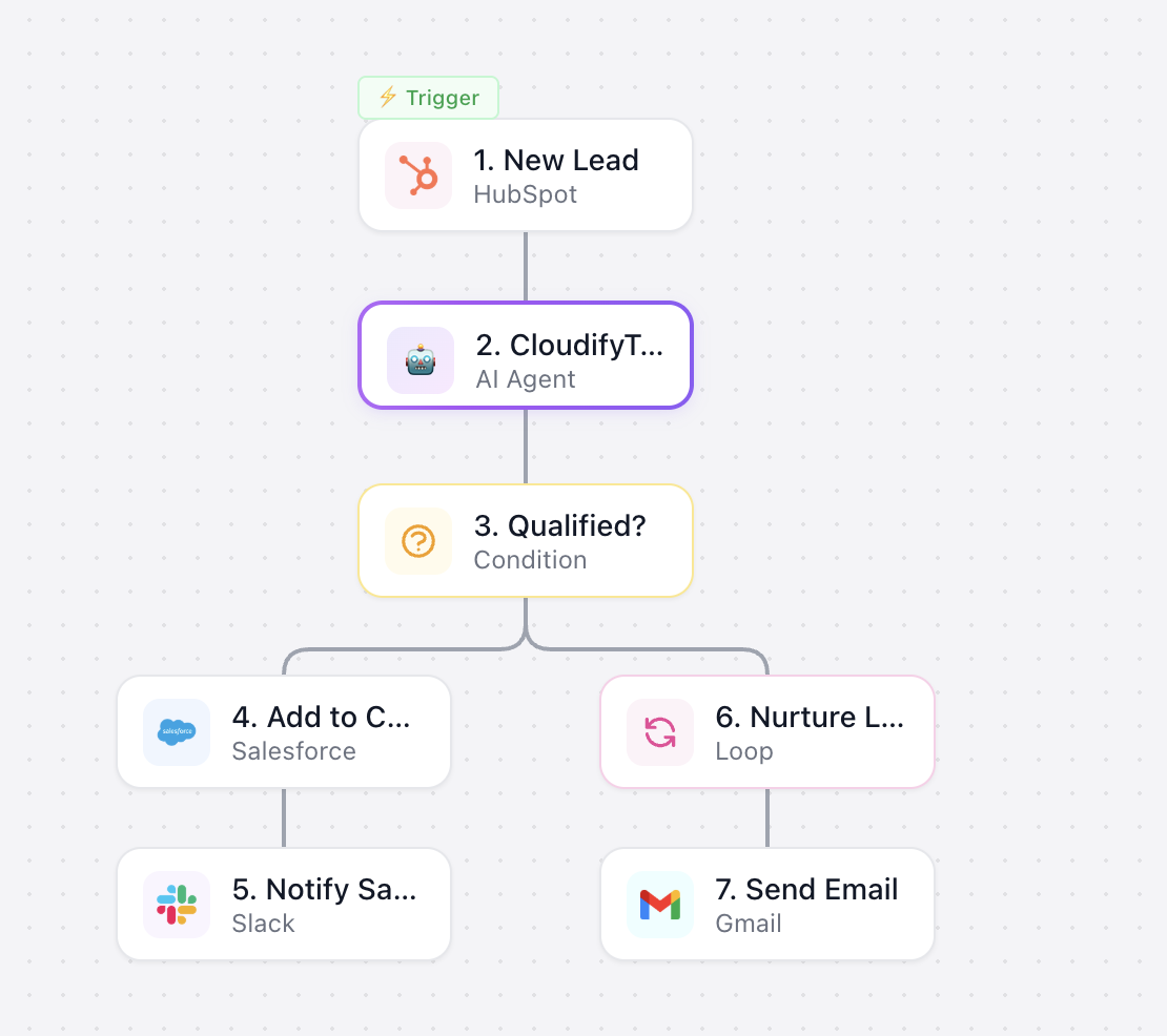 Over 300+ apps are supported — including Gmail, Slack, Google Sheets, Shopify, HubSpot, and more.